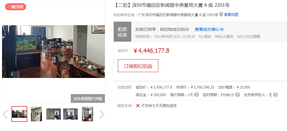 客戶陸先生在8月中旬,以444萬的價格拍下了一套位于福田區的法拍房,比市場價便宜了132萬,相當于打了7.5折,可以說是“撿大漏”了!