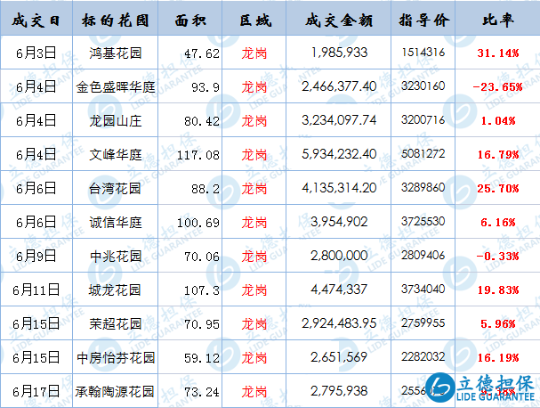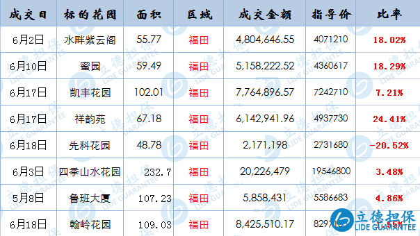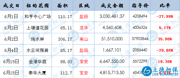 目前小編僅統計6月份數據,截止到18號,放出的福田及龍崗房源最多。跟政府參考價格相比,福田法拍成交價格基本高于參考價,比率最高至24%。價格還是比較堅挺,跟市場上所說學位過剩逃離深圳事實還是有很大水份。