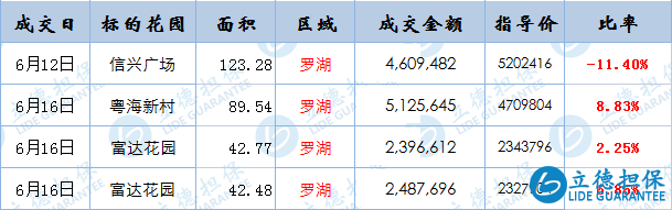 相比其他區域,羅湖受政府指導價的影響是最小的。這個月成交的住宅公4套,除大戶型信興廣場以外,其余基本跟指導價持平。