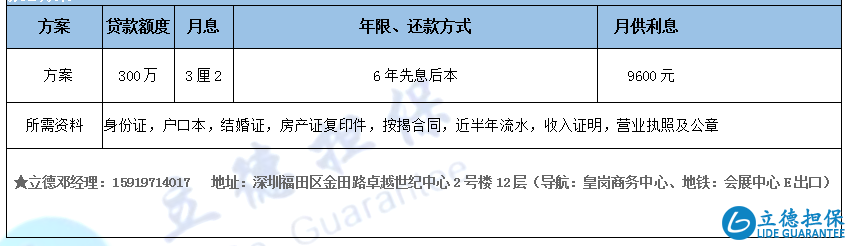 案例摘要:張總名下有一套龍華房產,市值1000萬,還欠銀行600萬。是國外知名品牌保健品的代理商,主要是走線上跨境經營。配偶名下還有一套非臨街商鋪紅本,后通過立德擔保操作低利息貸款,成功放款300萬!